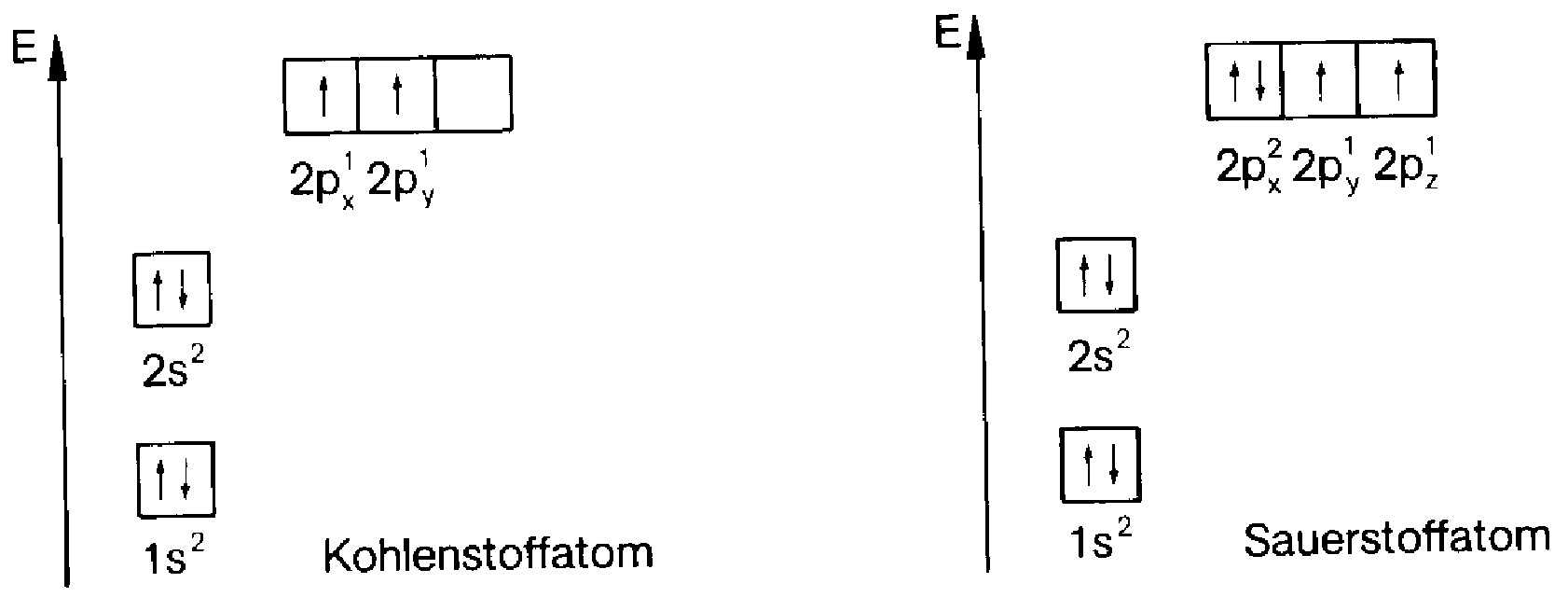 Das \(s\)-Orbital hat ein, das \(p\)-Orbital hat drei, das \(d\)-Orbital hat fünf und das \(f\)-Orbital hat sieben Niveaus gleicher Energie. In jedem dieser Niveaus können sich höchstens zwei Elektronen aufhalten, die sich in der Drehrichtung oder Spin unterscheiden. Orbitale gleicher Energie werden zuerst mit Elektronen gleichen Spins ausgefüllt.