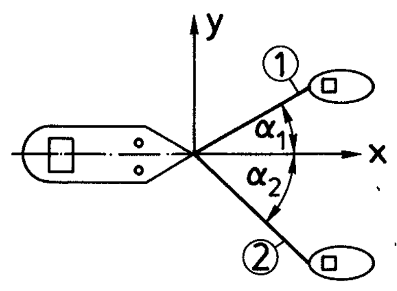 Bestimmen Sie graphisch den Betrag der Seilkraft des Schleppers 1, also \(F_1\) und den Betrag der Seilkraft des Schleppers 2, also \(F_2\) für die Winkel \(\alpha_1=30^{\circ}\) und \(\alpha_2=45^{\circ}\).